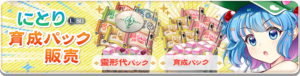 期間限定で「世界一位 河城にとり(L80)」の育成アイテムがお得に手に入る「にとり(L80)育成パック」が2種類登場!