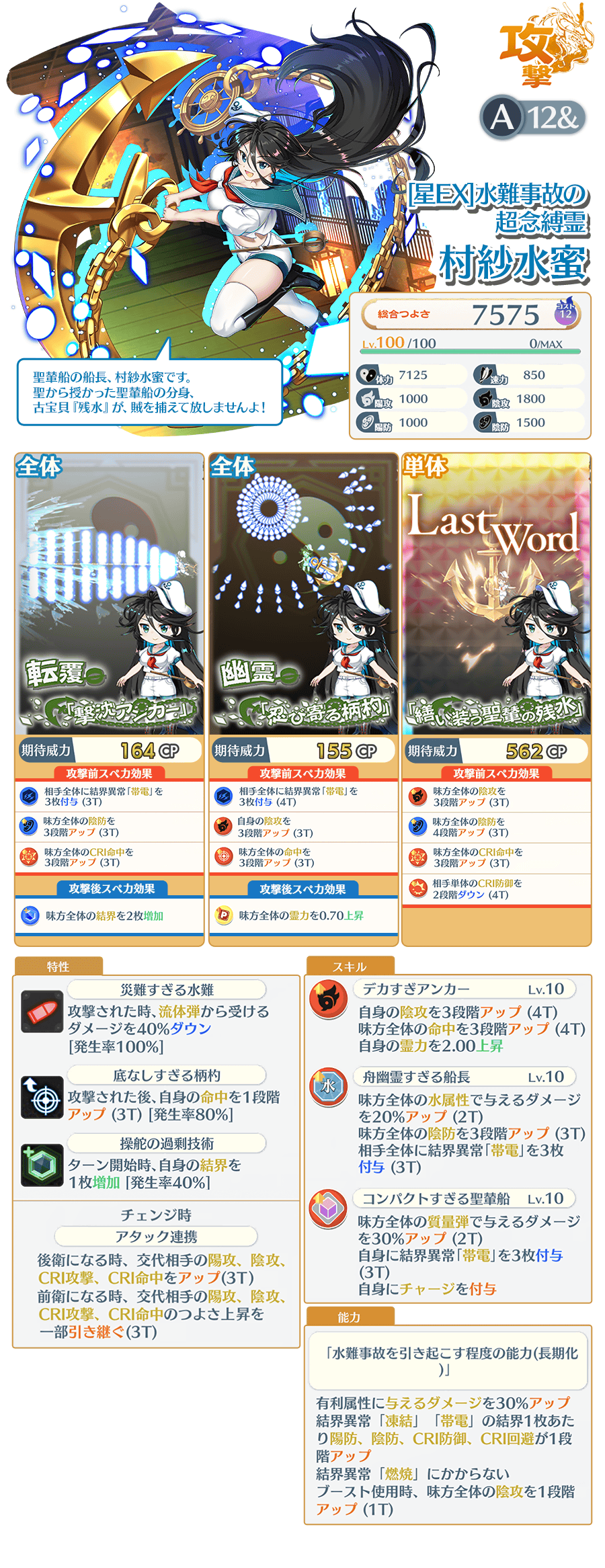 ※「[星EX]水難事故の超念縛霊 村紗水蜜(A12&)」以外の限定キャラクターは登場しません。