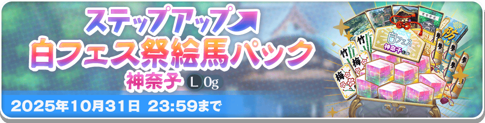 ※白フェス神奈子祭絵馬を期限までに使用されなかった場合、「風化山岳の寂びた信仰 八坂神奈子(L0g)」が伝書に送られます。