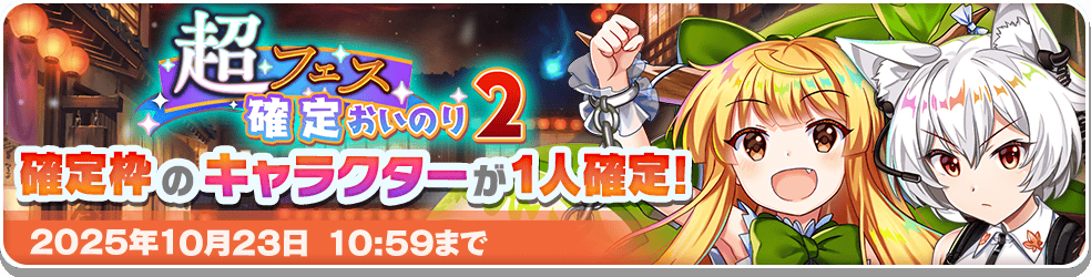 対象の超フェス限定キャラクターの中から1人が必ず仲間になる「超フェス確定おいのり2」が登場!