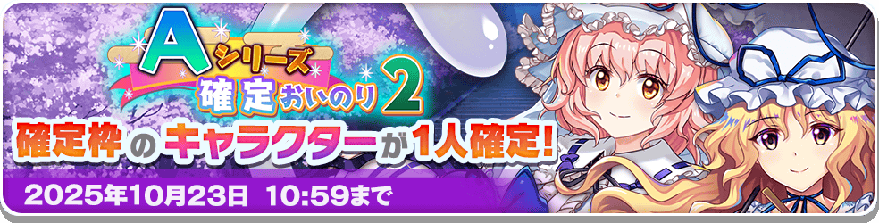 対象のAシリーズキャラクターの中から1人が必ず仲間になる「Aシリーズ確定おいのり2」が登場!