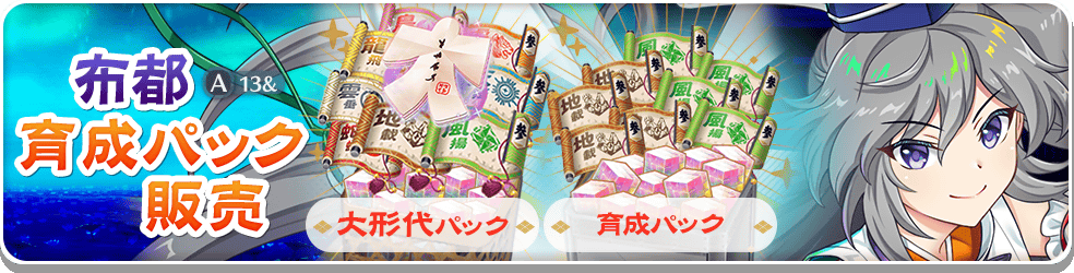 どちらのパックも、「[神EX]超古代日本の尸解仙 物部布都(A13&)」の昇格に特に多く必要な「巻物[参]」がセットになっており、同キャラクターの育成に特化しています。