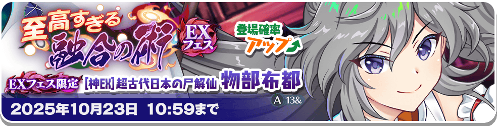 ※「[神EX]超古代日本の尸解仙 物部布都(A13&)」は「至高すぎる融合の術 EXフェス」おいのり終了後、通常開催しているおいのりには追加されません。