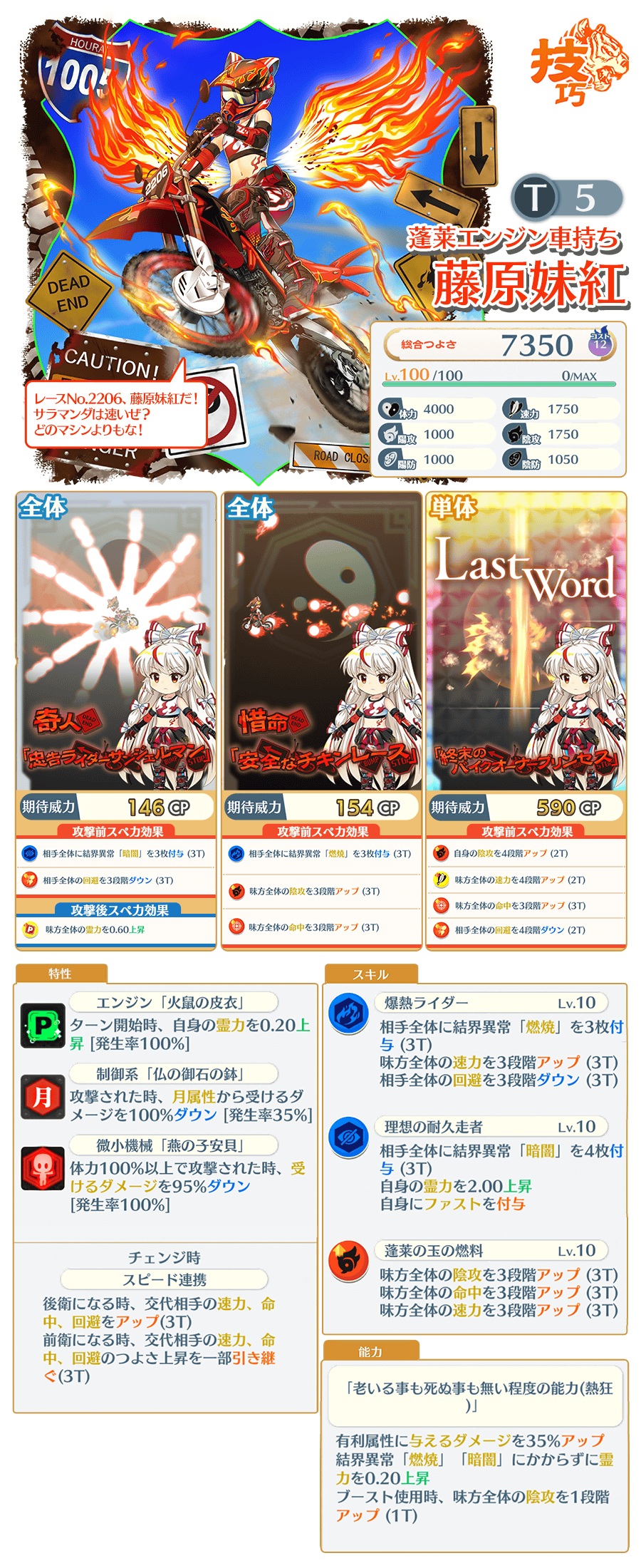 「蓬莱エンジン車持ち 藤原妹紅(T5)」は、超フェス限定で登場するキャラクターです。