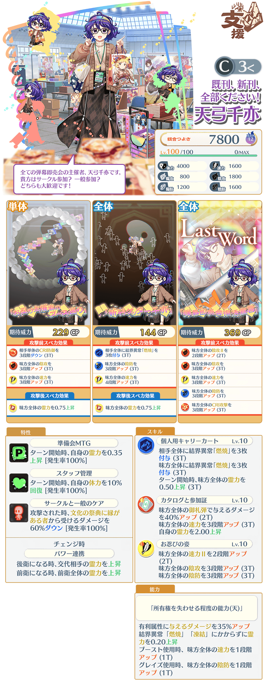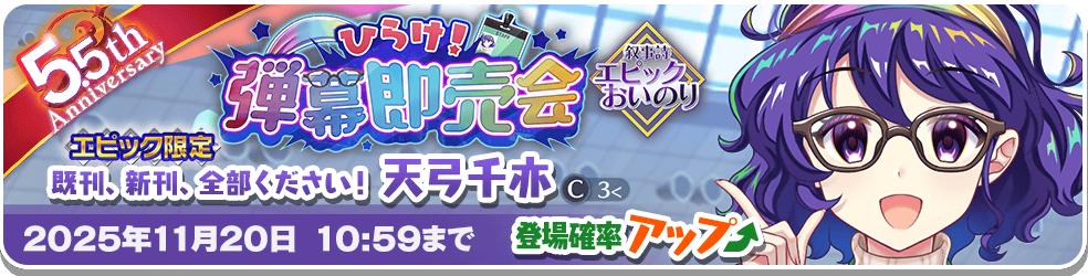 「既刊、新刊、全部ください! 天弓千亦(C3<)」は、エピックおいのり限定で登場するキャラクターです。