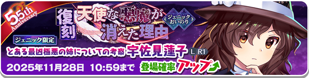 「とある最凶極悪の姉についての考察 宇佐見蓮子(LR1)」の登場確率がアップしたおいのりが再登場します!