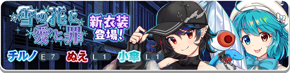 ショップにて 「チルノ(E7)」「多々良小傘(L1)」「封獣ぬえ(L1)」の新衣装 が登場!
