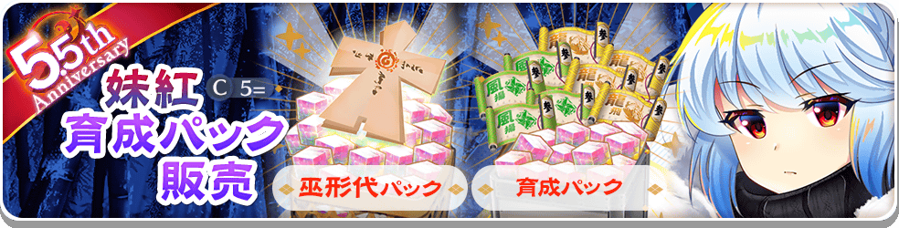 期間限定で「蓬莱ヒートポンプ 藤原妹紅(C5=)」の育成アイテムがお得に手に入る「妹紅(C5=)育成パック」が2種類登場!