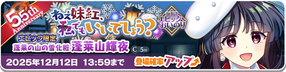 期間限定で「蓬莱の山の雪化粧 蓬莱山輝夜(C5=)」の育成アイテムがお得に手に入る「輝夜(C5=)育成パック」が2種類登場します!
