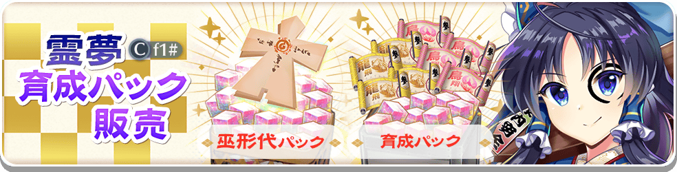 期間限定で「神を降ろす祈祷師の新年 博麗霊夢(Cf1#)」の育成アイテムがお得に手に入る「霊夢(Cf1#)育成パック」が2種類登場します!