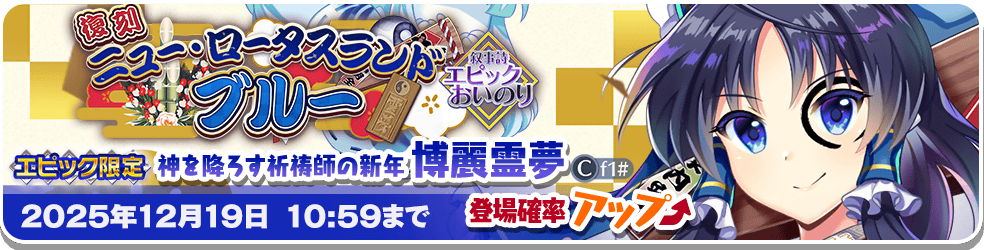 「神を降ろす祈祷師の新年 博麗霊夢(Cf1#)」は、エピックおいのり限定で登場するキャラクターです。
