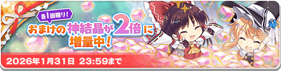 期間限定!各1回限りで神結晶パックのおまけが2倍に増量いたします!