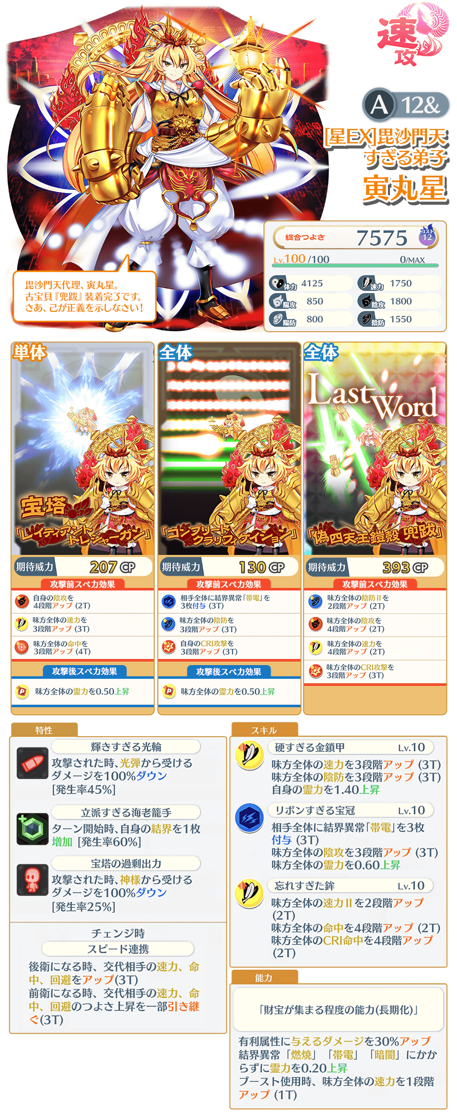 「[星EX]毘沙門天すぎる弟子 寅丸星(A12&)」は、EXフェス限定で登場するキャラクターです。