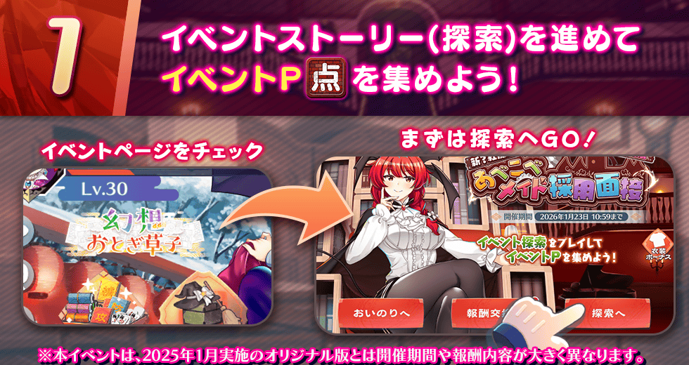 一部探索は、1日1回、獲得できるイベントPが7倍になります。