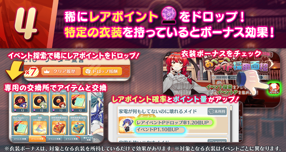 ※本イベントで獲得できるレアイベントPは、本イベント専用のものとなります。別のイベントのレアイベントPとして、交換所での使用はできませんのでご注意ください。