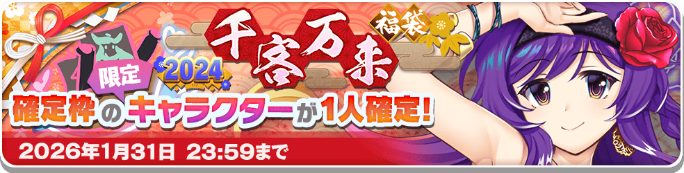 対象の限定キャラクターの中から1人が必ず仲間になる2024年『千客万来』福袋が登場!