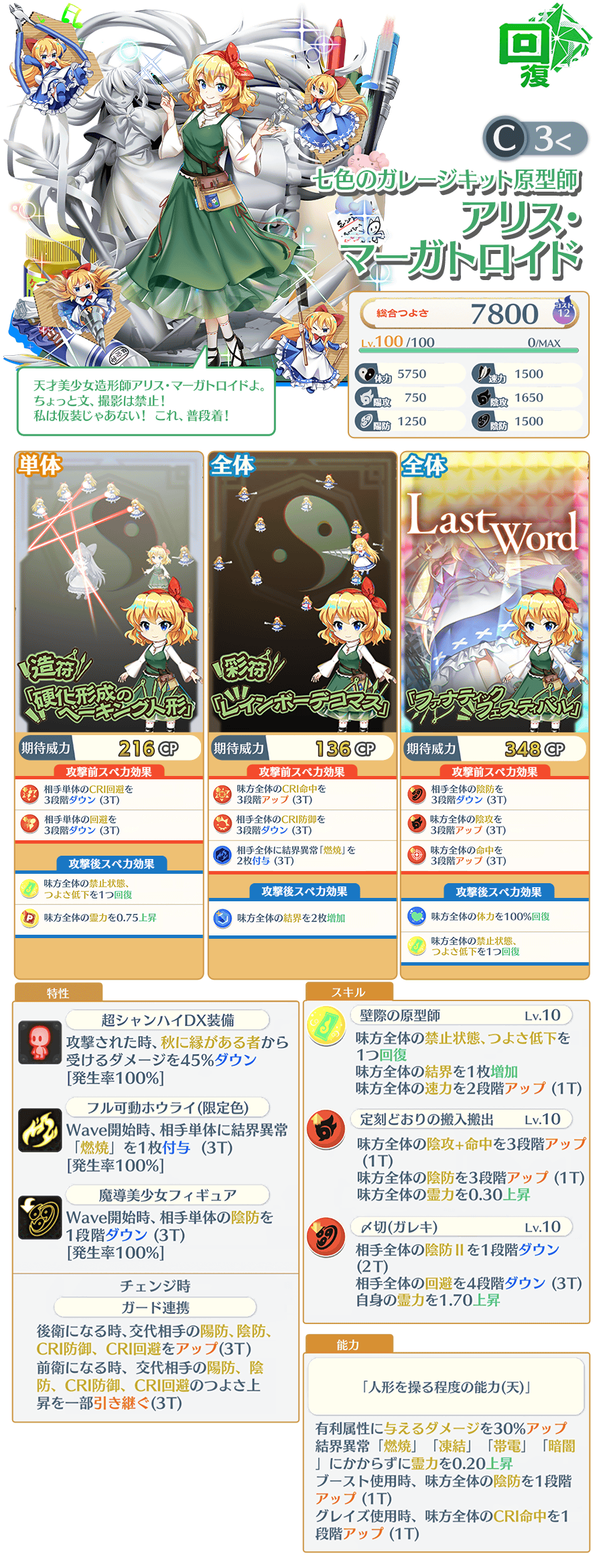 ※画像に記載されているCPはスペルカードLv最大時かつブースト最大時の情報となります。