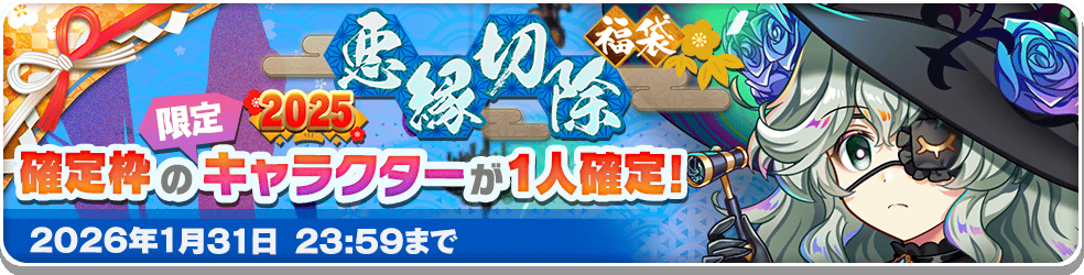 対象の限定キャラクターの中から1人が必ず仲間になる2025年『悪縁切除』福袋が登場!