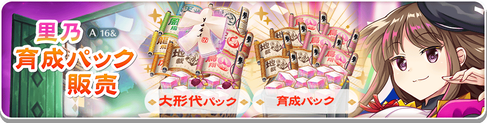 期間限定で「[天EX]超危険すぎるバックダンサーズ 爾子田里乃(A16&)」の育成アイテムがお得に手に入る「里乃(A16&)育成パック」が2種類登場!