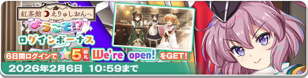 イベント「紅茶館えりゅしおんへようこそ!?」で2月6日までの間、新しいストーリーが段階的に開放されていき、15日目ですべてのストーリーが開放されます。