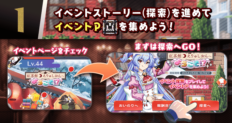 期間限定で登場するストーリーを進め、イベントPを集めていくイベントです。