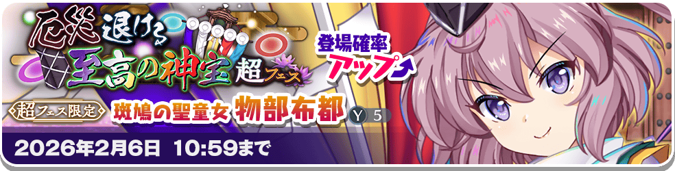 「斑鳩の聖童女 物部布都(Y5)」の登場確率がアップしたおいのりが登場します!