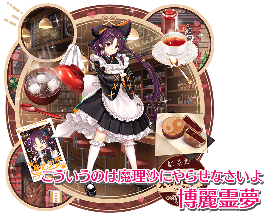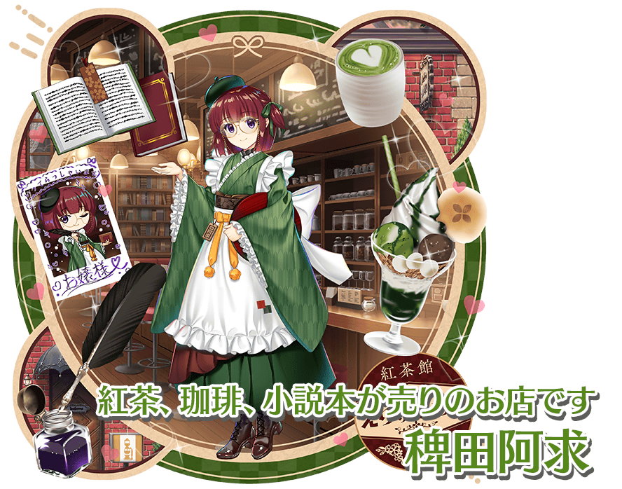 稗田阿求(L1):衣装「紅茶、珈琲、小説本が売りのお店です」