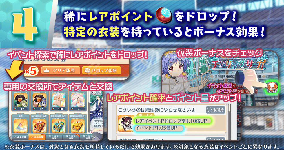 ※本イベントで獲得できるレアイベントPは、本イベント専用のものとなります。別のイベントのレアイベントPとして、交換所での使用はできませんのでご注意ください。