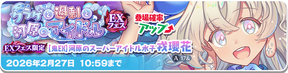 「[鬼EX]河原のスーパーアイドル水子 戎瓔花(A17&)」の登場確率がアップしたおいのりが登場!