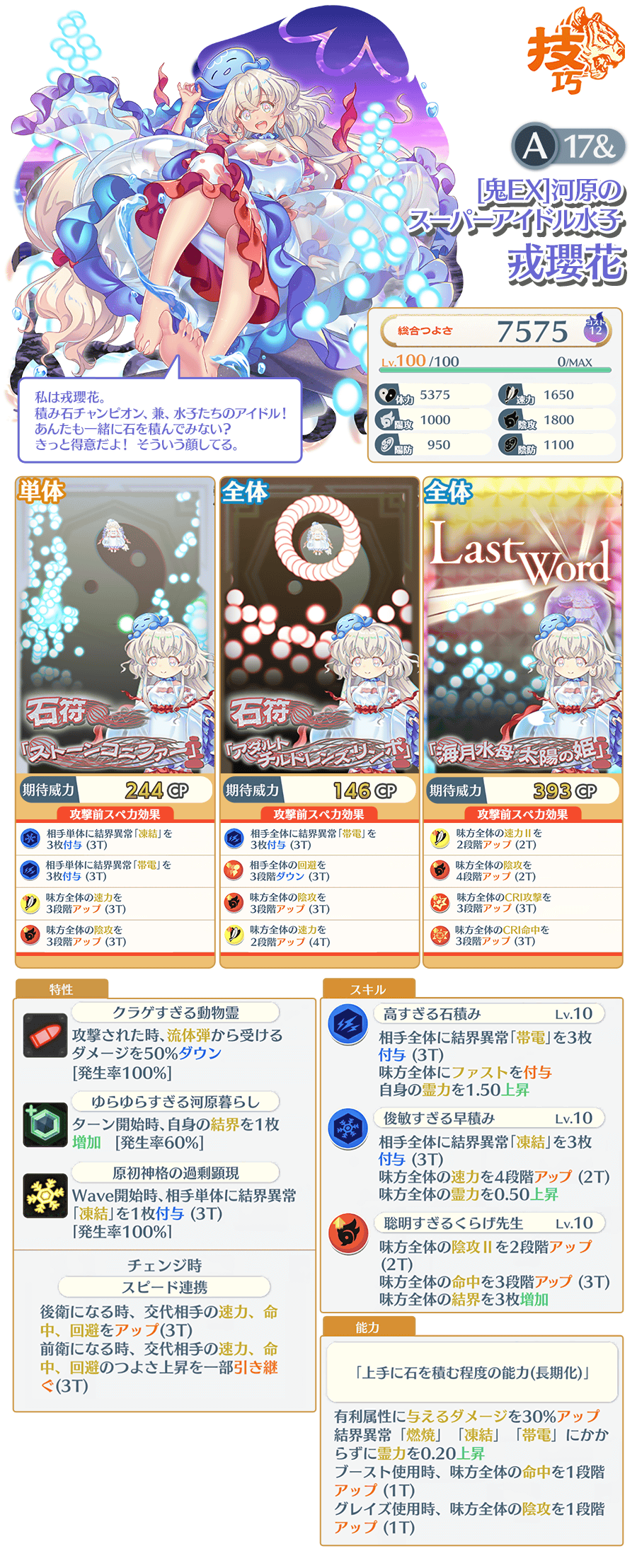 「[鬼EX]河原のスーパーアイドル水子 戎瓔花(A17&)」は、EXフェス限定で登場するキャラクターです。