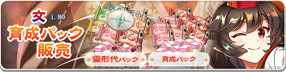期間限定で「ラブレター 射命丸文(L80)」の育成アイテムがお得に手に入る「文(L80)育成パック」が2種類登場します!