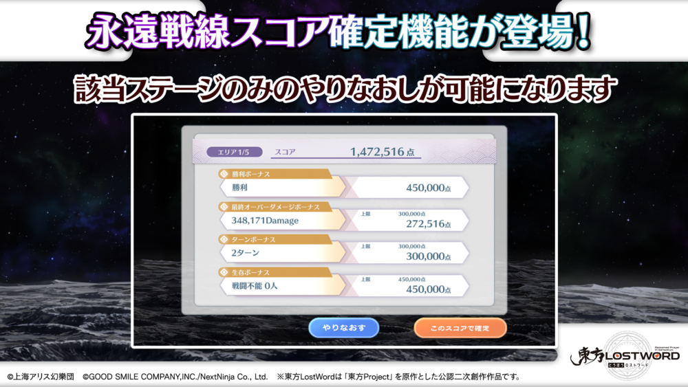 ※スコアは、エリア5クリアまたはエリア1をクリア後にギブアップすることで確定となります。