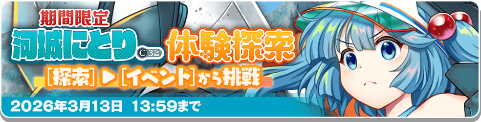 すべての強化を完了した状態の「幻想機アクレムリン 河城にとり(C3≧)」がGUESTとして登場し、強さを体験できるクエストです。