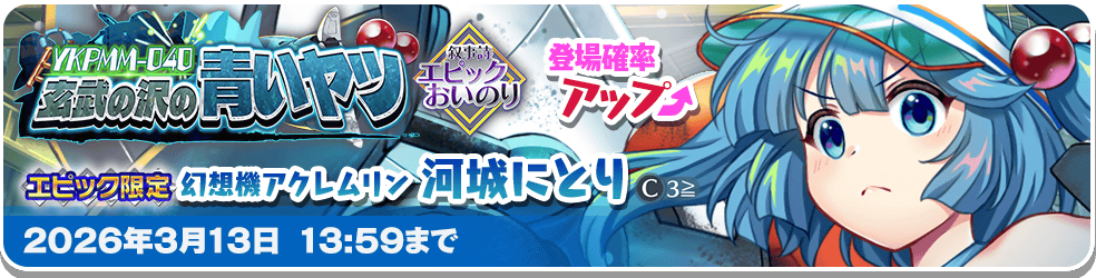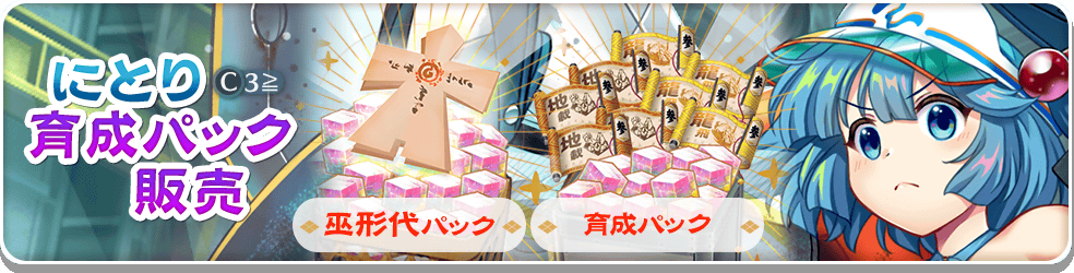 期間限定で「幻想機アクレムリン 河城にとり(C3≧)」の育成アイテムがお得に手に入る「にとり(C3≧)育成パック」が2種類登場します!