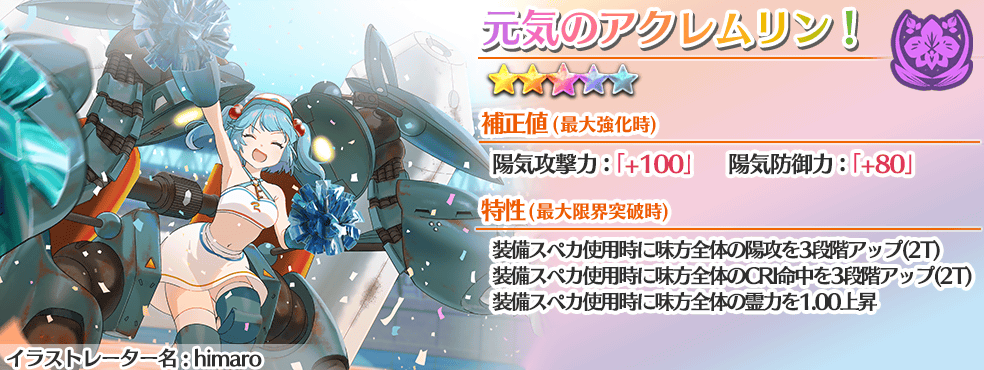 ※画像に記載されている特性は最大限界突破時の情報となります。