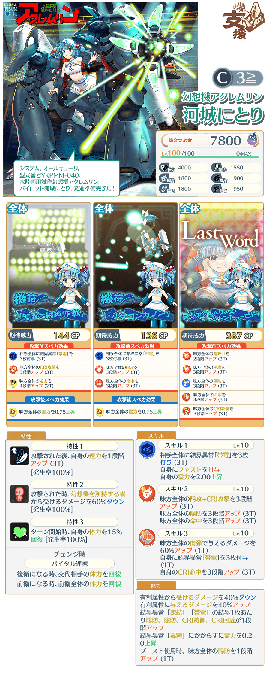 ※画像に記載されている特性は最大限界突破時の情報となります。
