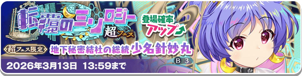 「地下秘密結社の総統 少名針妙丸(B3)」の登場確率がアップしたおいのりが登場します!