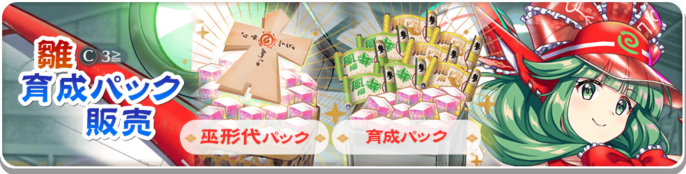 期間限定で「幻想機ヴォルテクス 鍵山雛(C3≧)」の育成アイテムがお得に手に入る「雛(C3≧)育成パック」が2種類登場します!