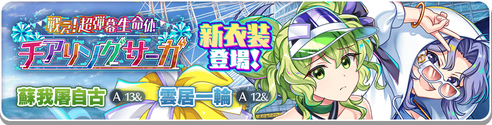 今回登場する新衣装は、開催中のイベント「戦え! 超弾幕生命体チアリングサーガ」や、復刻イベント「渡し守と舟幽霊の水掛け論 ウサミミが先か?タマゴが先か? 短縮版」などで、衣装ボーナスの対象となっております。