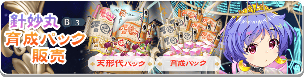 期間限定で「地下秘密結社の総統 少名針妙丸(B3)」の育成アイテムがお得に手に入る「針妙丸(B3)育成パック」が2種類登場します!
