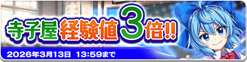 期間中、「寺子屋」によって手に入る仲間経験値が3倍になります!