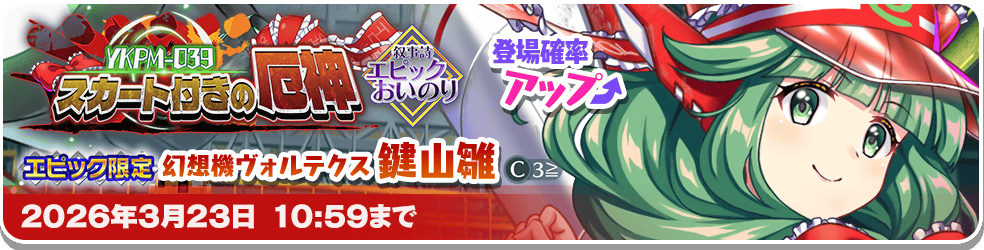 「幻想機ヴォルテクス 鍵山雛(C3≧)」の登場確率がアップしたおいのりが登場します!