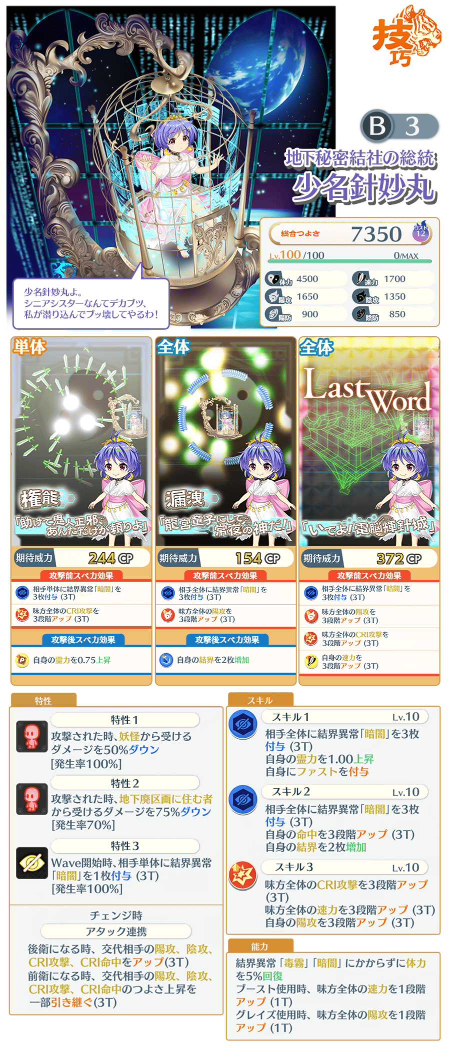 「地下秘密結社の総統 少名針妙丸(B3)」は、超フェス限定で登場するキャラクターです。
