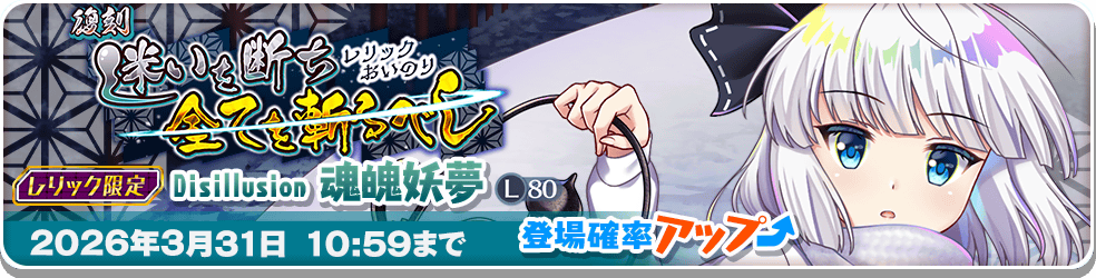 「Disillusion 魂魄妖夢(L80)」の登場確率がアップしたおいのりが再登場します!