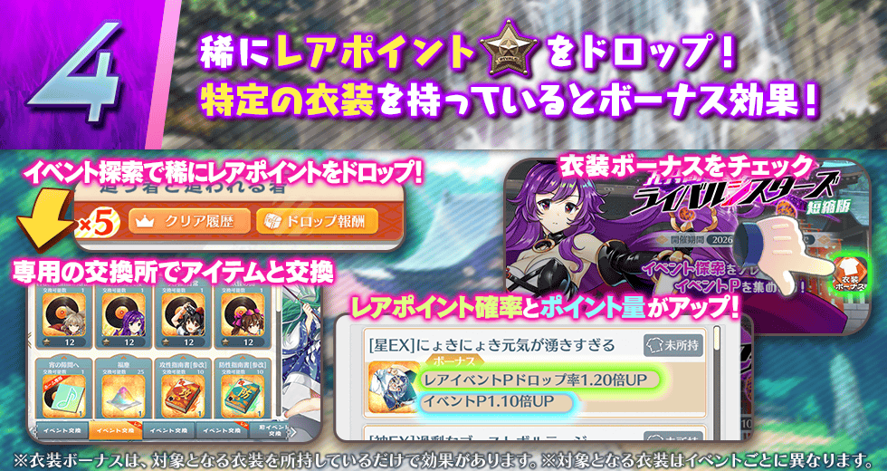 ※本イベントで獲得できるレアイベントPは、本イベント専用のものとなります。別のイベントのレアイベントPとして、交換所での使用はできませんのでご注意ください。