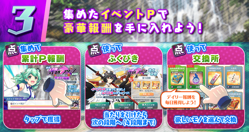 ※レアイベントPに累計報酬、ふくびきはありません。本イベント専用の交換所でのみ使用が可能です。