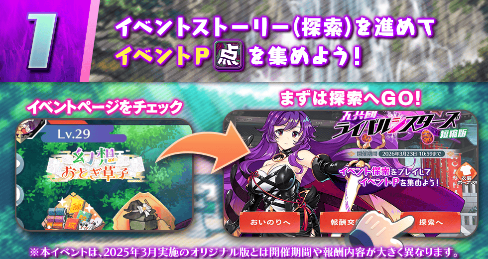 一部探索は、1日1回、獲得できるイベントPが5倍になります。