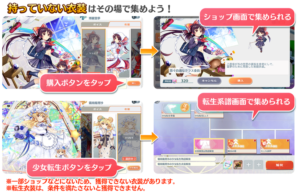 少女転生実装予定の「霧雨魔理沙(L80)」「伊吹萃香(W1)」「東風谷早苗(W5)」「古明地さとり(A11)」「古明地こいし(A11)」の「転生鏡」をログインボーナスでプレゼント!