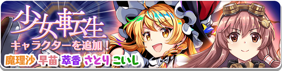 対象キャラクターは 「霧雨魔理沙(L80)」 「伊吹萃香(W1)」 「東風谷早苗(W5)」 「古明地さとり(A11)」 「古明地こいし(A11)」の5人となります。