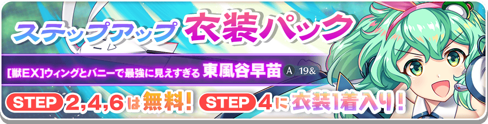 ショップにて 「東風谷早苗(A19&)」の新衣装 が獲得できるステップアップパックがそれぞれ登場します!